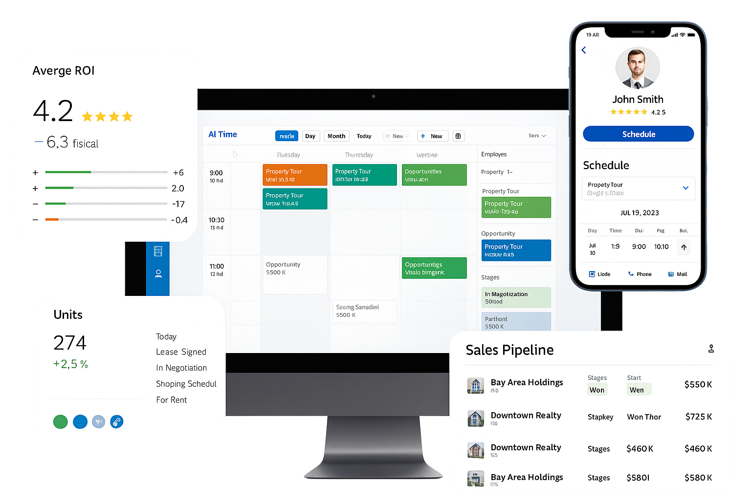 AIPO.AI agency partner for growth. Automate contact acquisition and centralize buyer/seller management, optimizing agent work. Intelligent CRM will help you keep track of each client, effectively plan meetings, and get real-time insight into the sales process, helping to increase deal volume.